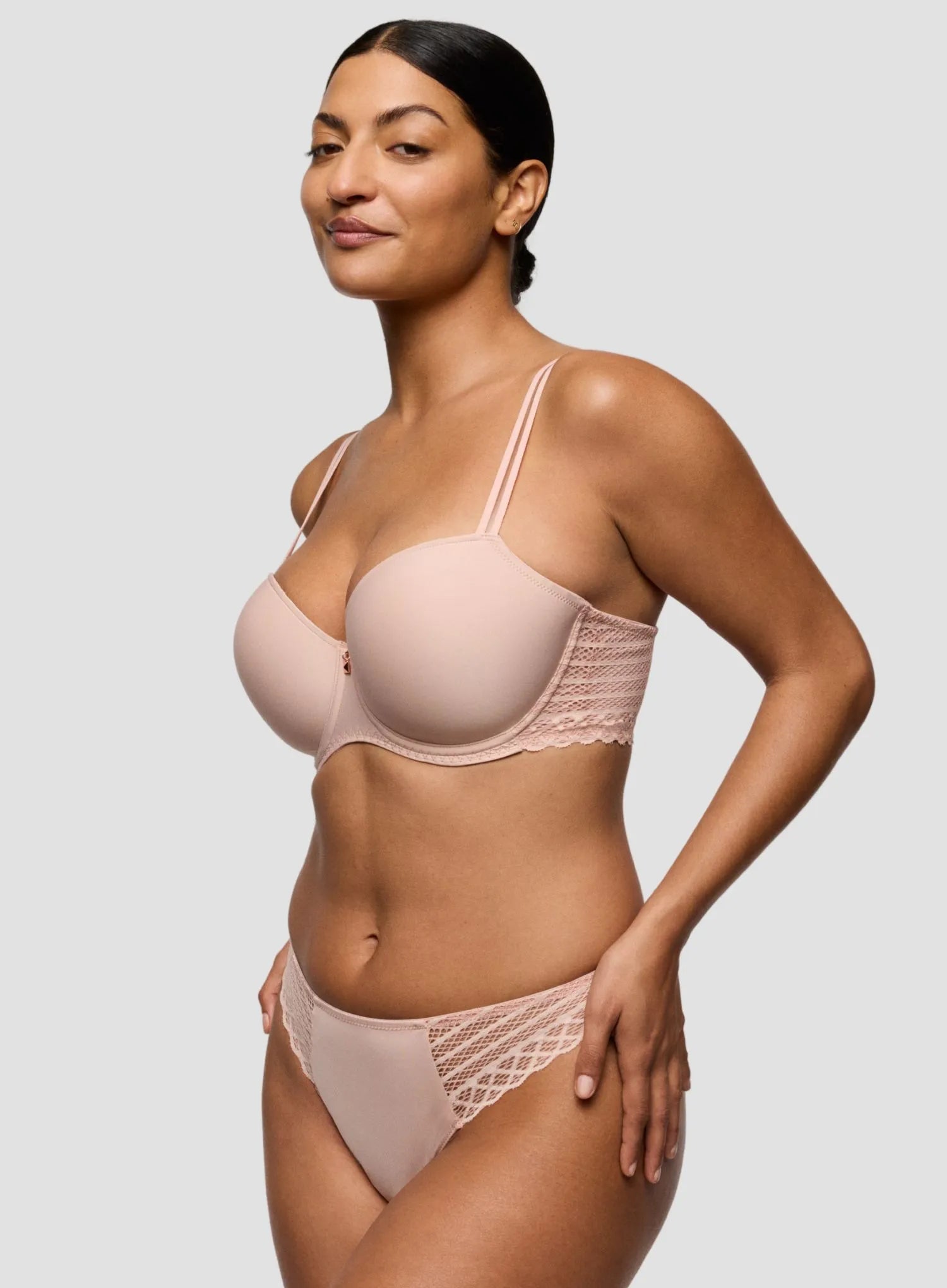 Seamless moulded cups and stretch lace move with your body for comfortable, all-day support. Rose-gold hardware and underwired construction ensure lift without digging, while the ergonomic design enhances shape and longevity, creating a bra that looks as good as it feels.