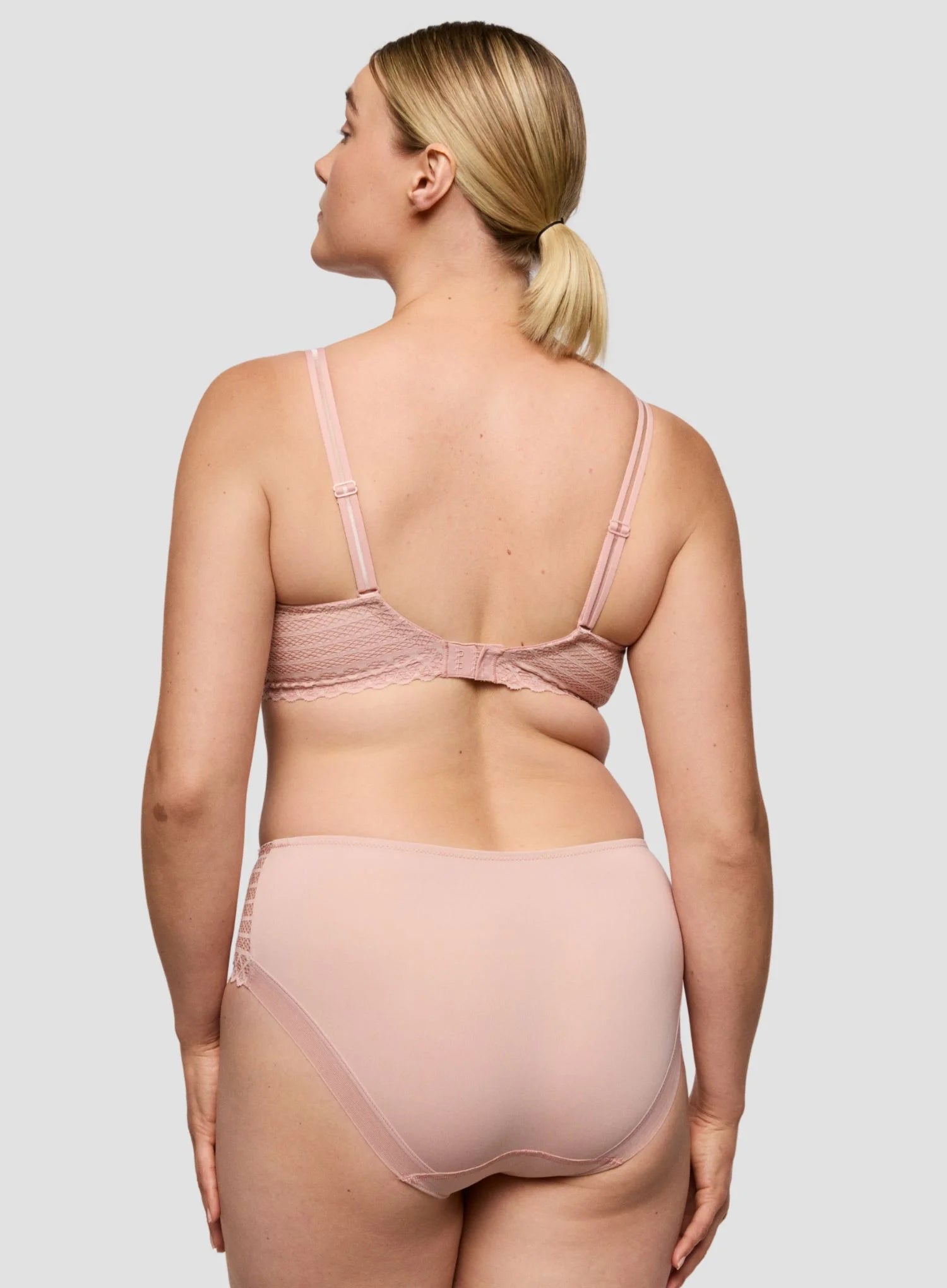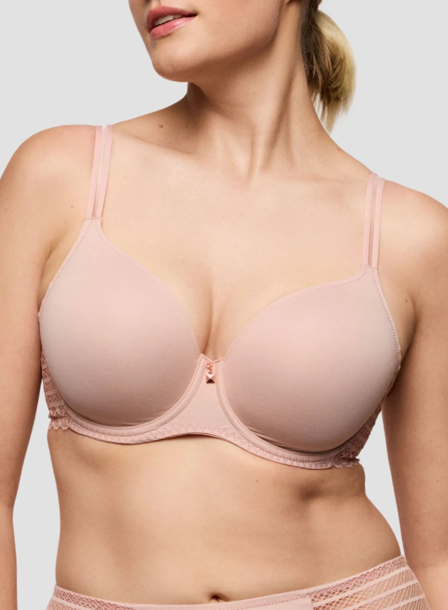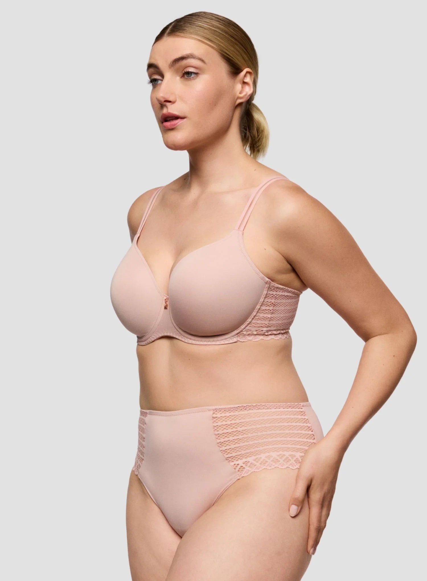PRIMADONNA TWIST Twist Side Padded Heart Shape Bra in Powder Rose is a comfortable, everyday bra with smooth, moulded cups for subtle lift and forward shaping. Delicate stretch lace wraps around the body for a touch of elegance, while the seamless cup design ensures a sleek look under clothing. Adjustable straps can be styled straight or crossed, and the warm Powder Rose tone flatters all skin tones for a polished, wearable finish.