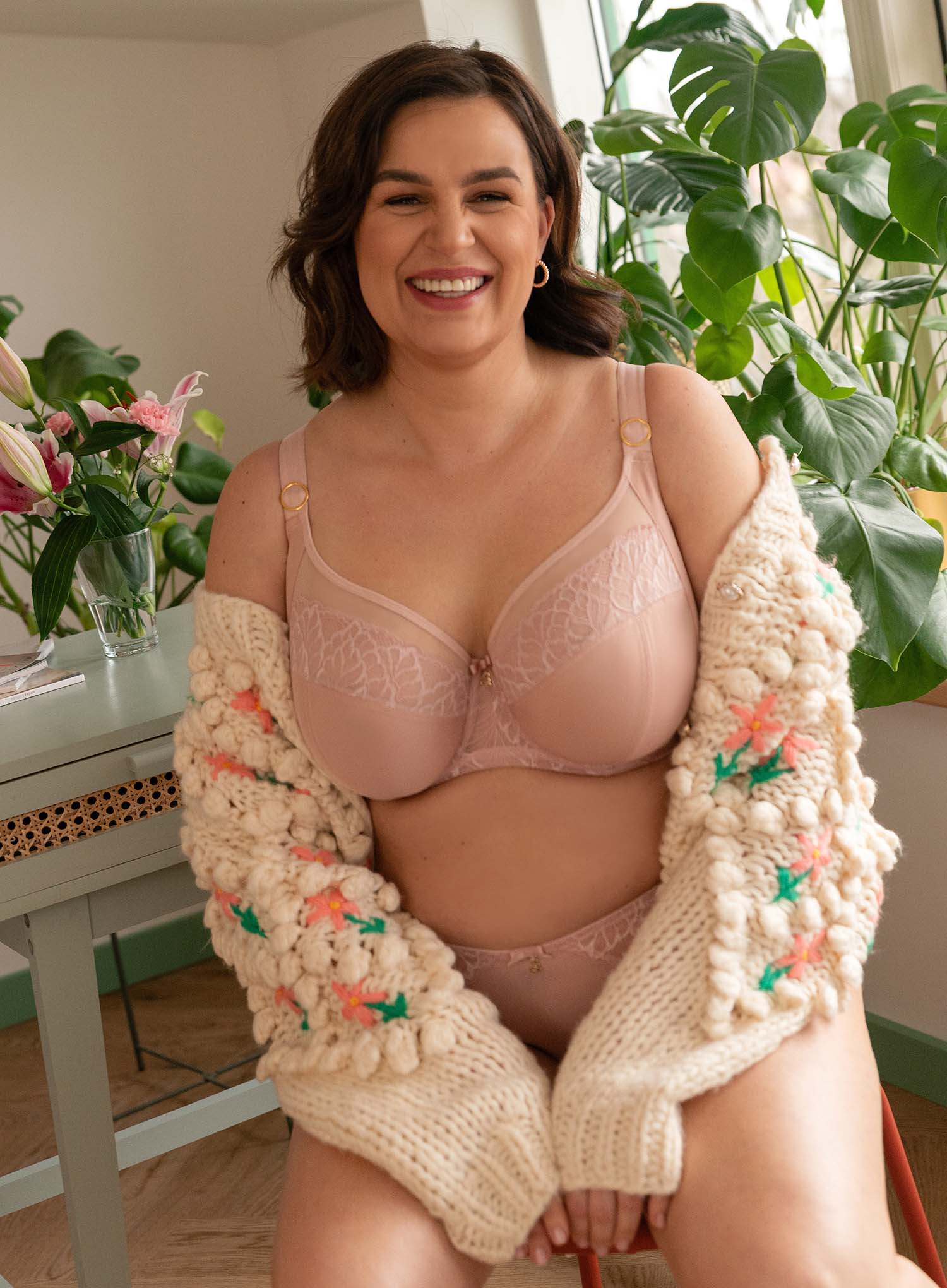 SAMANTA LINGERIE Amelia Midi Brief Amelia Earhart - the first woman to take to the skies over the Atlantic Ocean. Discover your own courage in this stunning collection, crafted from German lace in a soft powder rose colour. Crafted from decorative lace, this brief has a beautifully delicate look while still laying flat under clothing. Luxurious and incredibly soft on the skin, this is the perfect piece to complete your set.