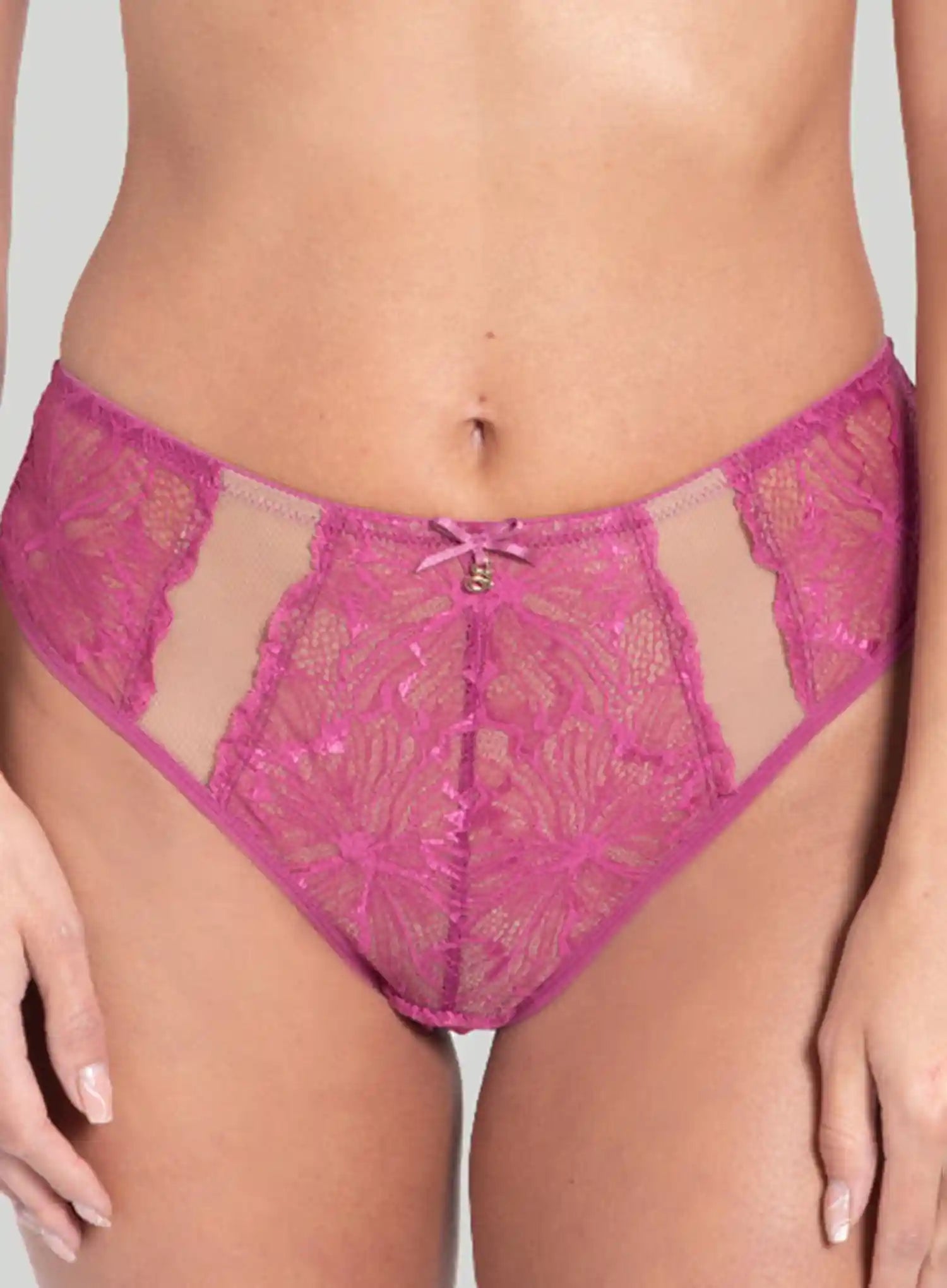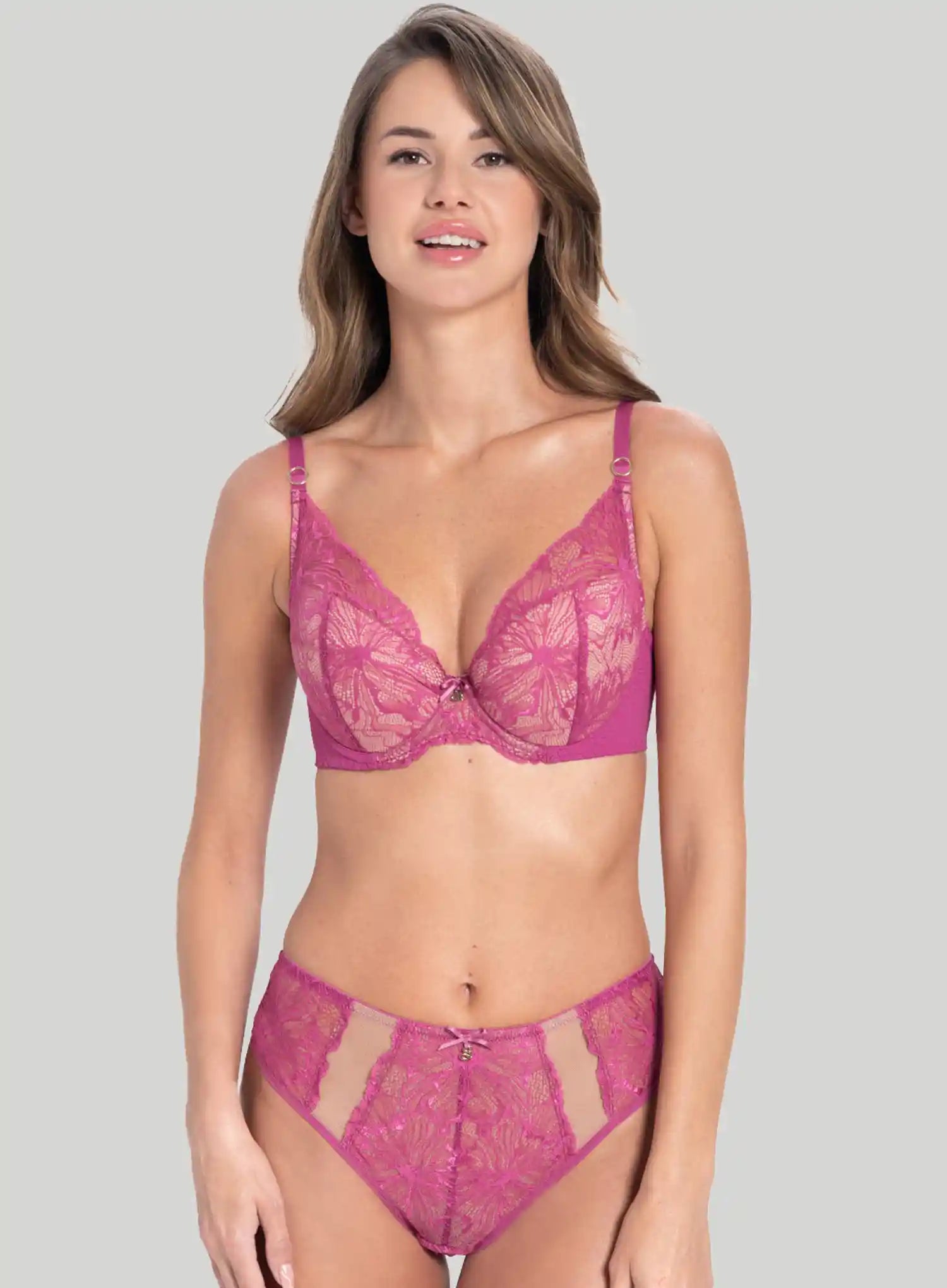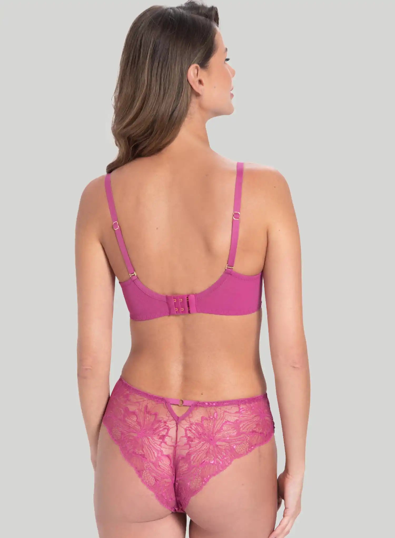 SAMANTA LINGERIE Mila Thong in Raspberry brings a bold, flirtier energy to the Mila collection. Made from sheer Italian lace with a soft cornflower design, it features front mesh panels and a cheeky Brazilian-style cut that enhances the curves without compromising on comfort.