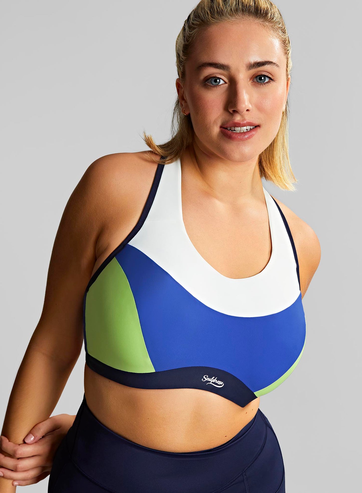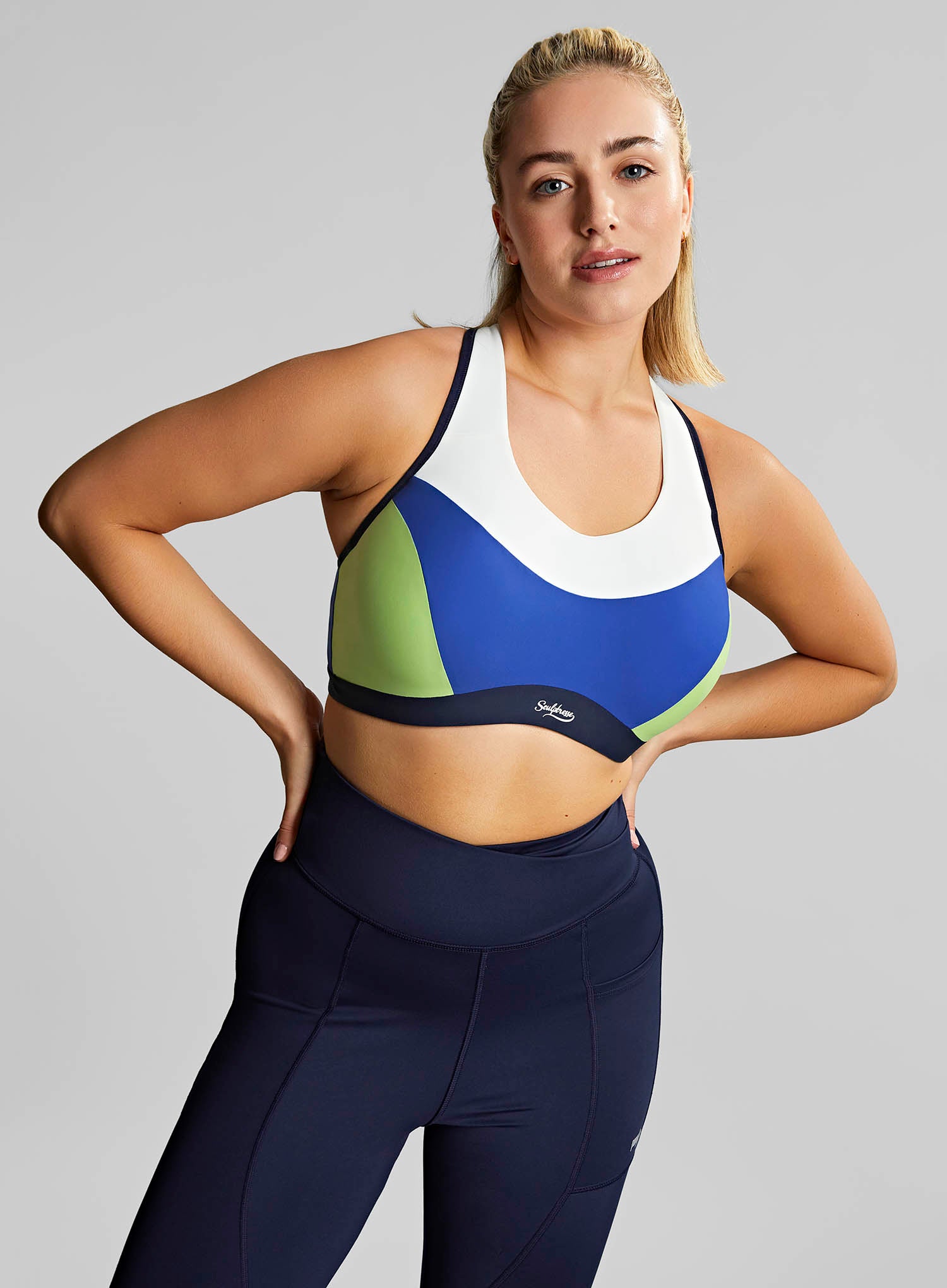SCULPTRESSE Activate Non-Padded Underwired Sports Bra Blue will inspire everyday dedication in a design that that is crafted to support you throughout your most active moments. The same features you know and love from Sculptresse Sport are now coming to you in a sleek new look, featuring smooth lines and a sleek, sporty-chic feel. The high neck line offers more coverage sitting flush to the body while foam straps mould to each unique shape, helping disperse pressure on the shoulders. Breathable fabric with moisture management keeps you cool and dry throughout your workout.