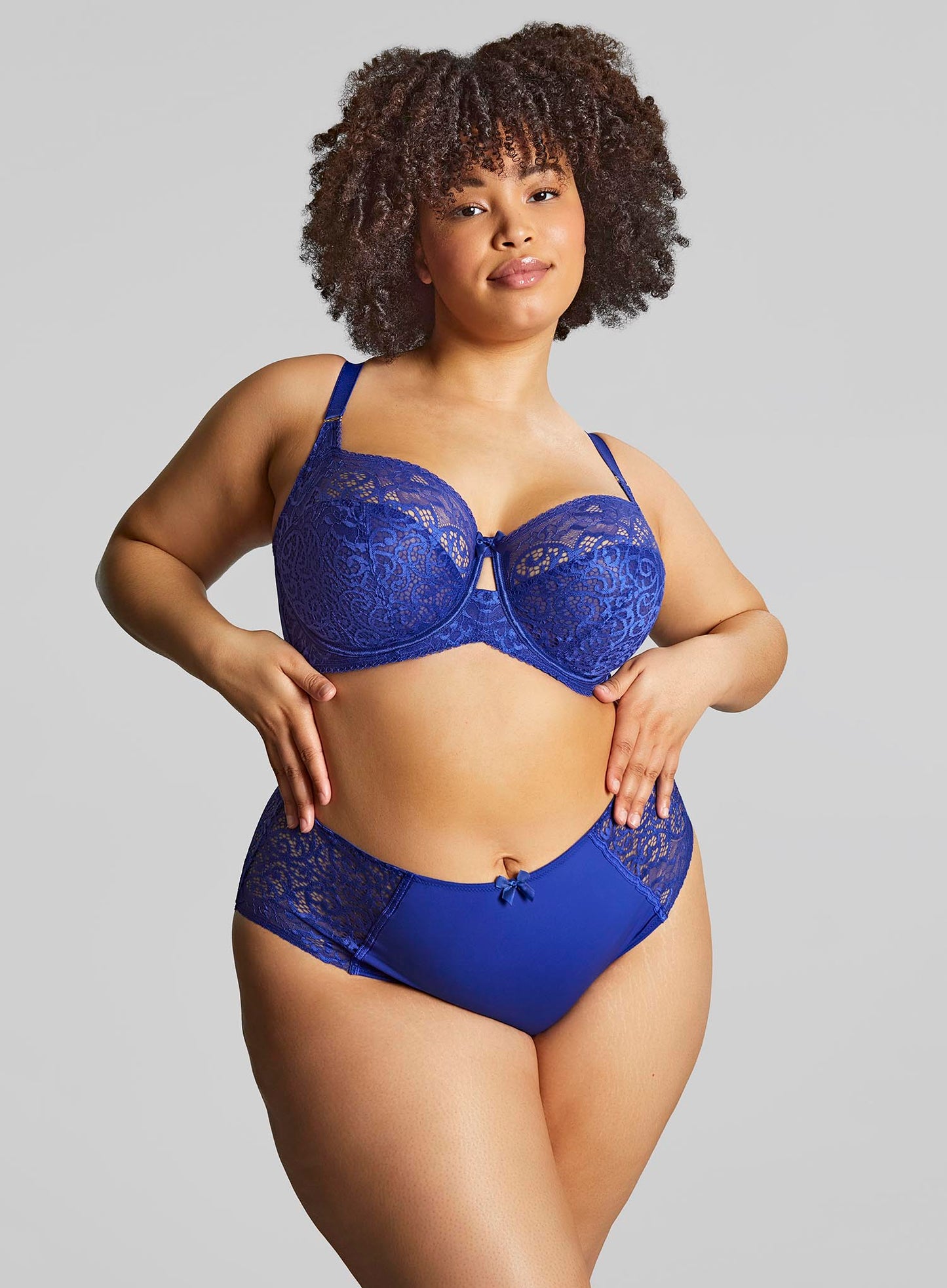 SCULPTRESSE Estel Full Cup Bra Royal Blue is easy to wear and impossible to forget, in a mood-boosting shade of electric royal blue. Although its lustrous lace looks and feels delicate, Sculptresse have poured their passion, expertise and technical capabilities into engineering the perfect fit, with design features like forward projection and double layered wings for smoothing and shaping. The ornate lace features a glamourous shine for a stylish look that doesn’t compromise on comfort.