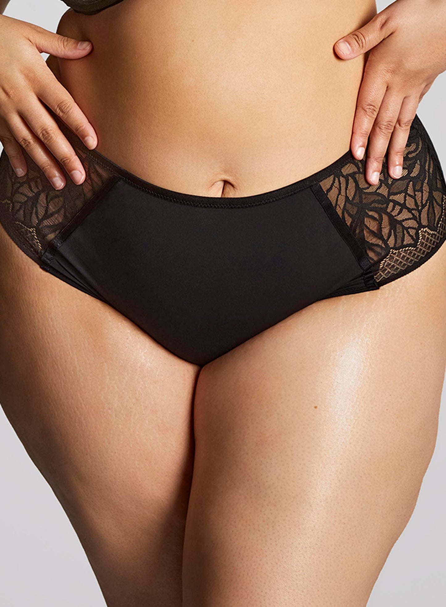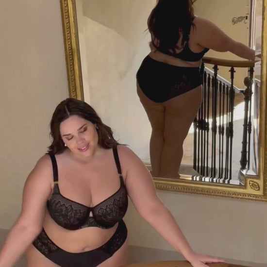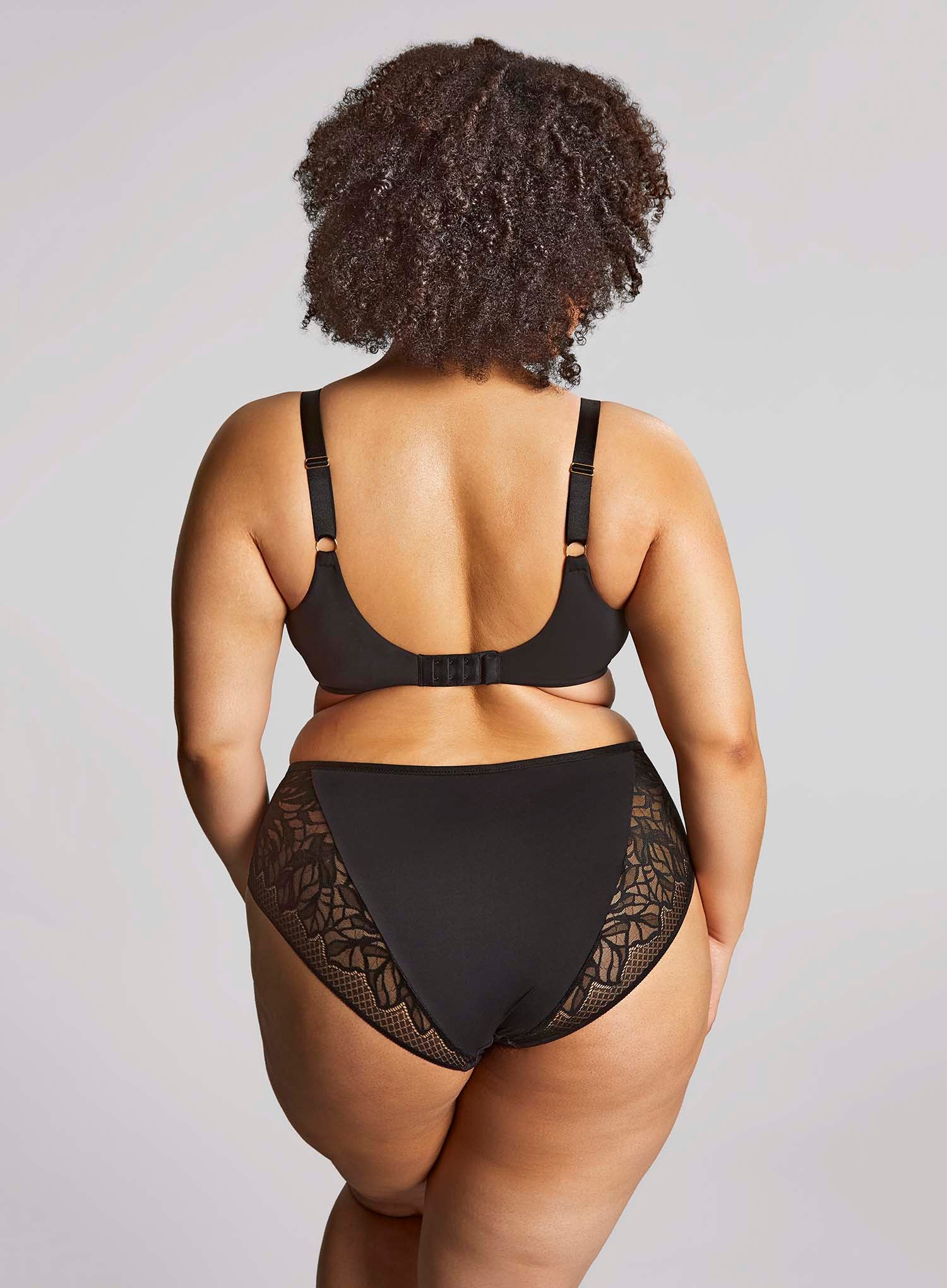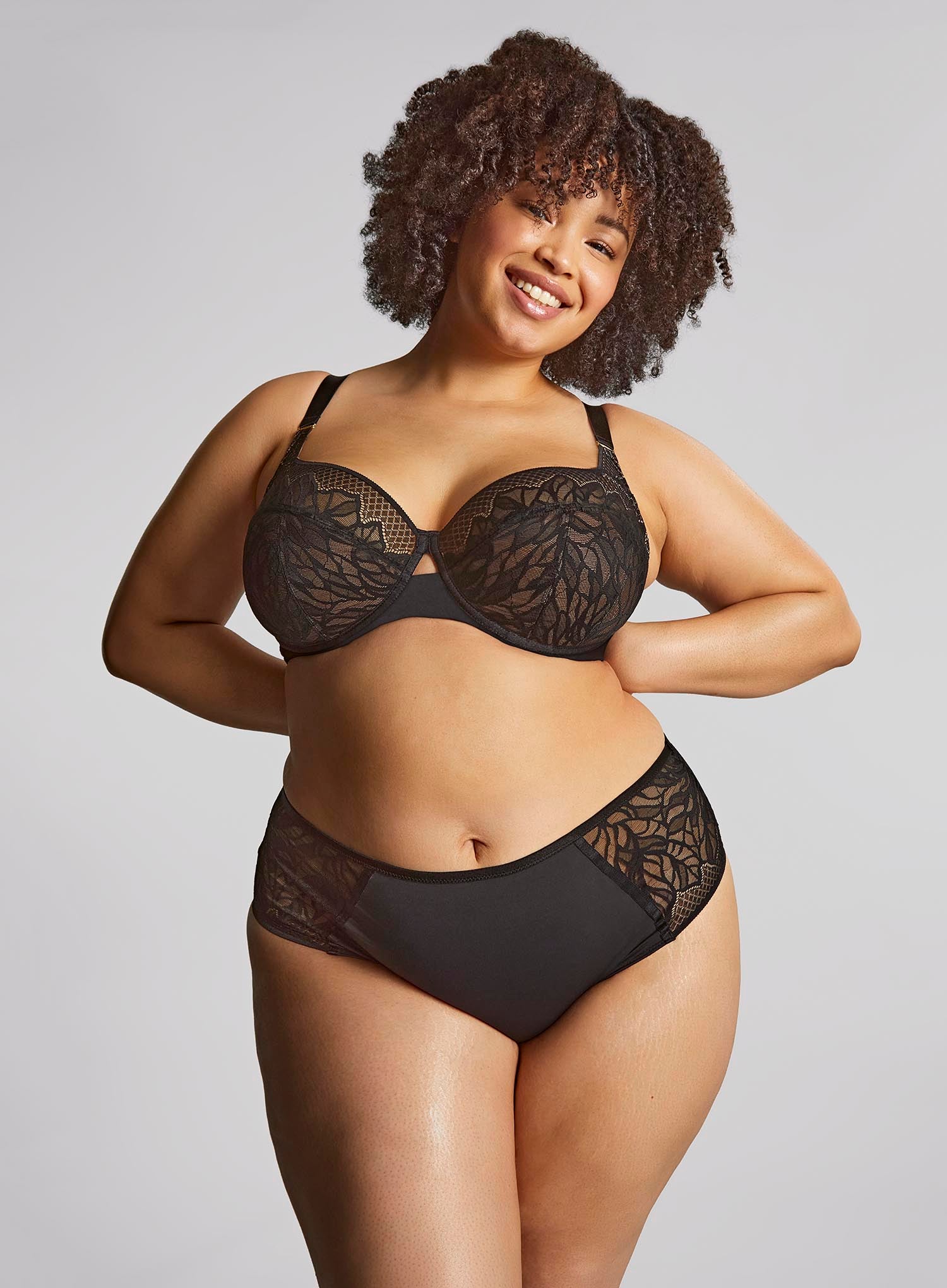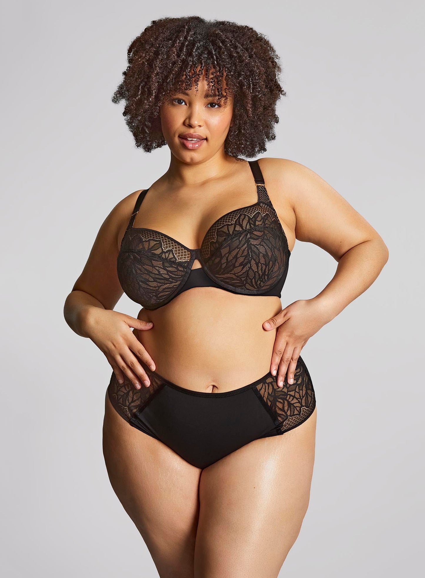SCULPTRESSE Sophia Deep Brief Black has it all! Introducing… lingerie that loves your body and never compromises on style, no matter your size. Crafted from stunning lace that blends dramatic florals with geometric diamonds, Sophia empowers you from the moment you slip her on. Even better, she’s made from recycled materials, combining conscious design with effortless chic. Engineered for all-day comfort and exceptional support, this iconic Deep Brief design features soft handle fabric for a forgiving fit.