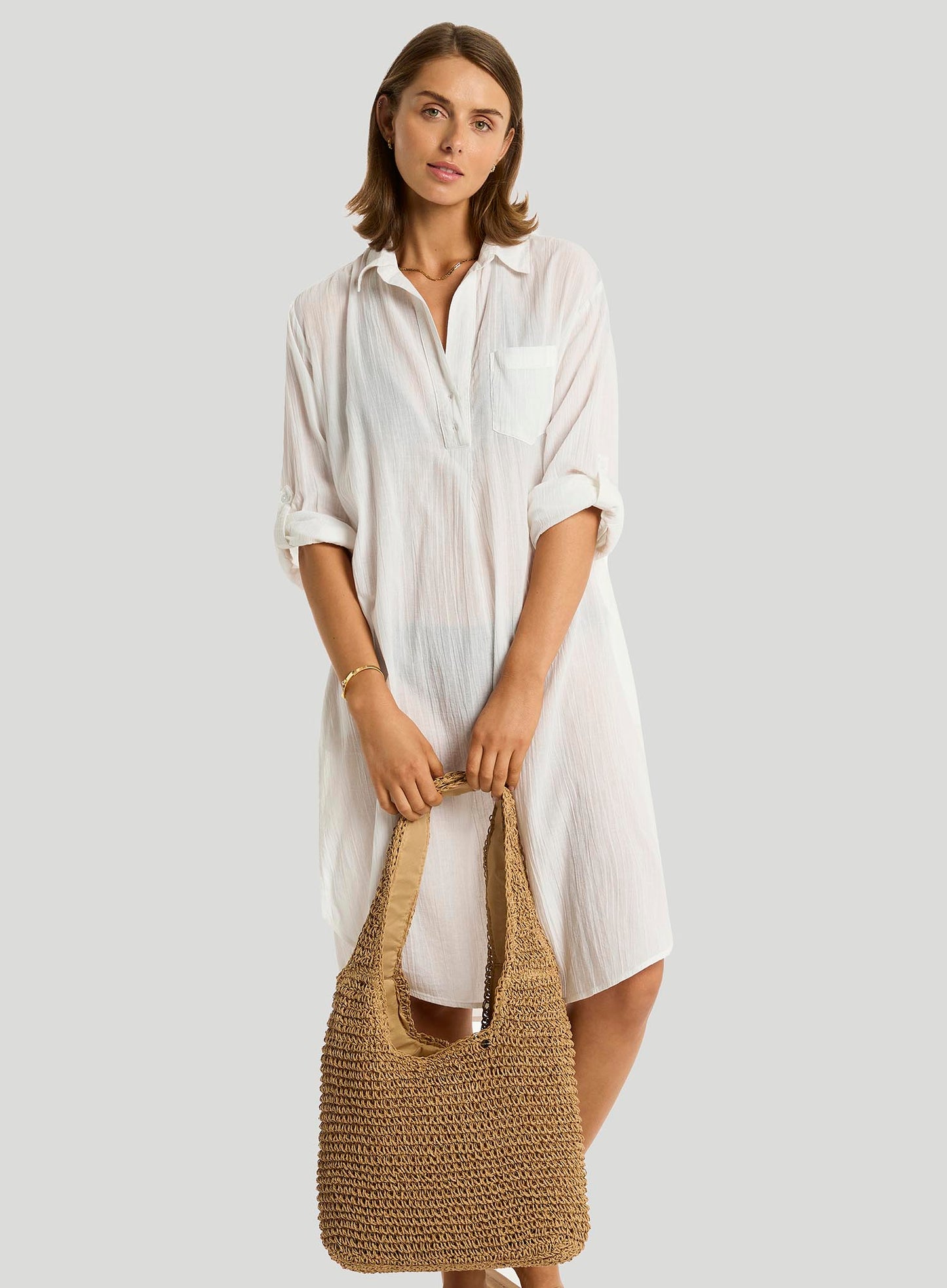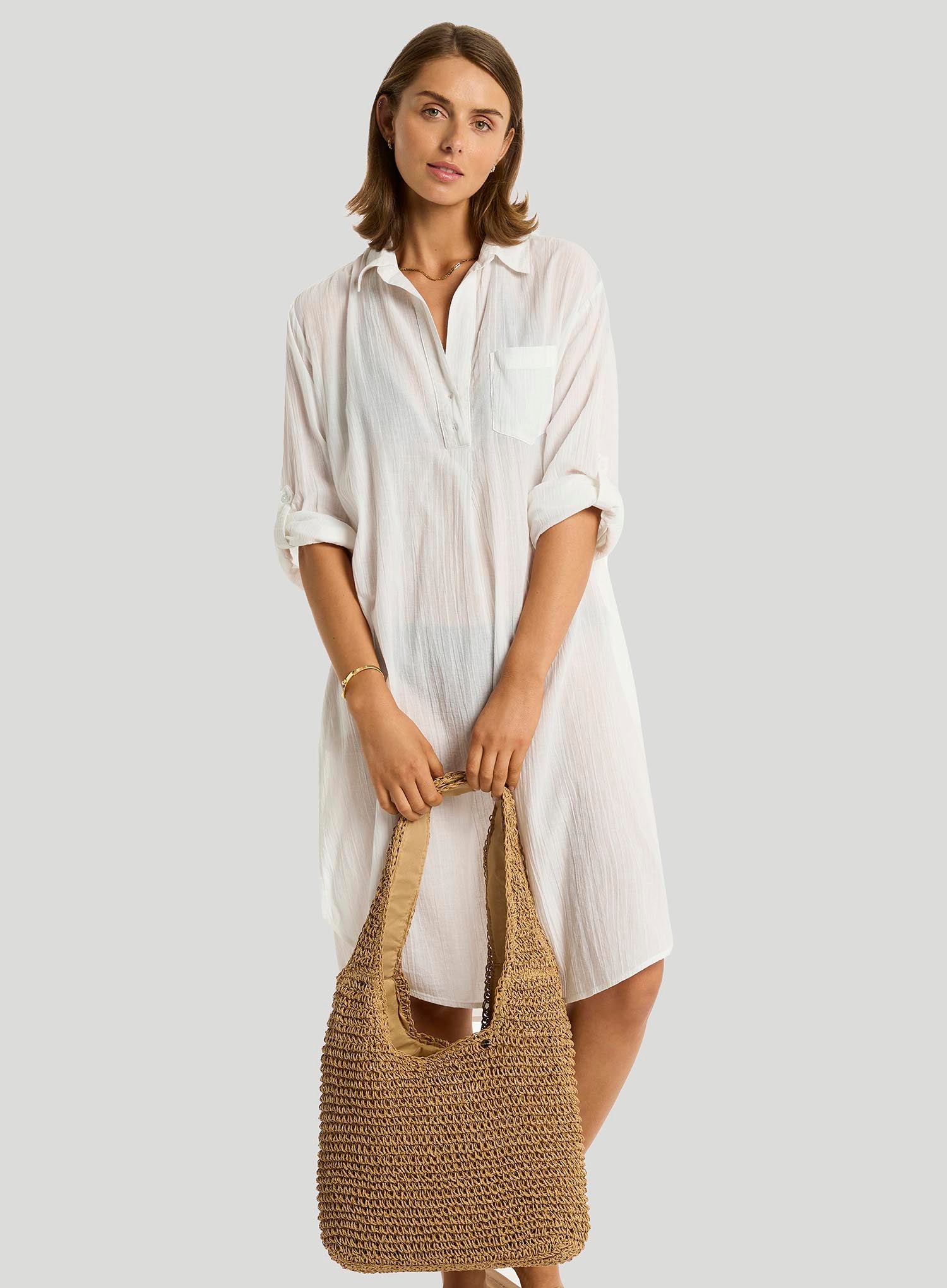 The spacious design features a zip closure to keep your essentials secure, an internal pocket for small items, and a soft internal lining for comfort and structure. Pair it with your favourite swim for a coordinated beach-to-bar vibe that’s as functional as it is chic.