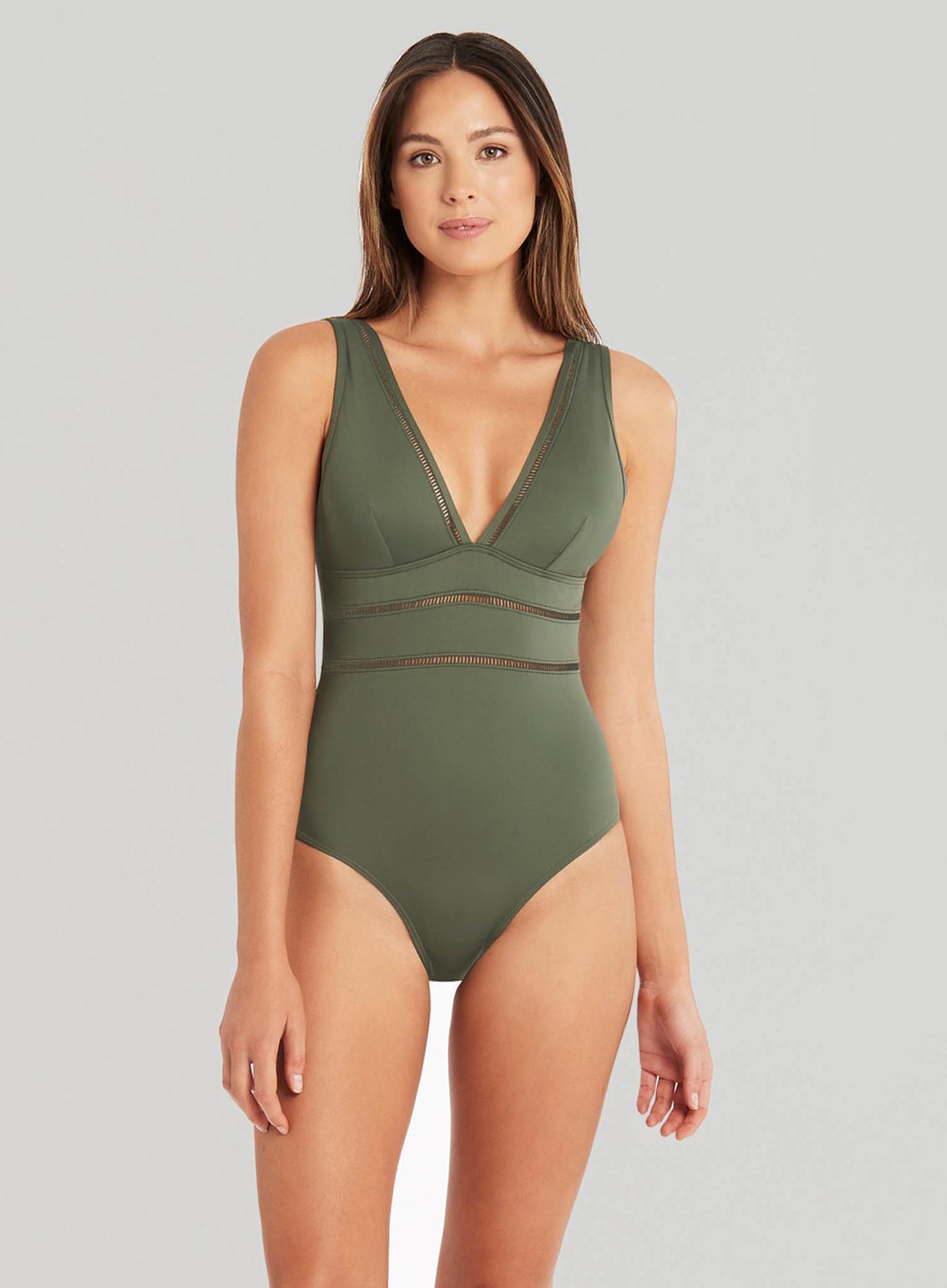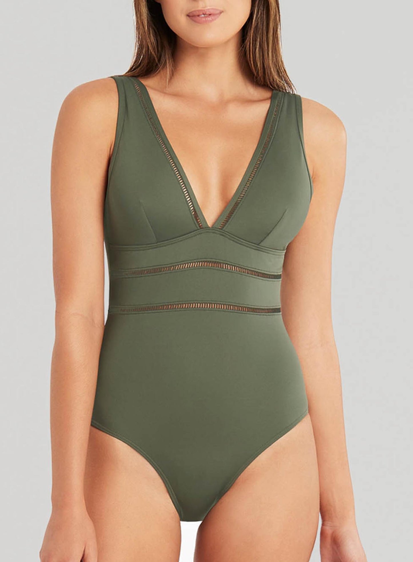 Sea Level: Eco Essentials Spliced Swimsuit Khaki