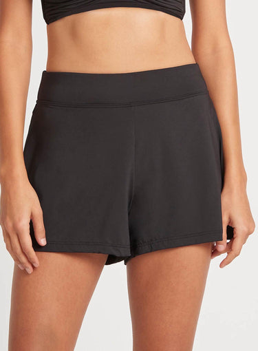 SEA LEVEL Eco Essentials Swim Short Black is where comfort meets confidence, designed for a smooth, sculpted fit with full coverage. Featuring an internal brief and powermesh lining at the front and back, these high-waisted swim shorts provide gentle tummy control and all-day support. Crafted from soft yet durable eco-friendly fabric, they offer a sleek, streamlined look while ensuring maximum comfort. A versatile swim essential that pairs effortlessly with any top, perfect for those seeking extra coverage without compromising on style.
