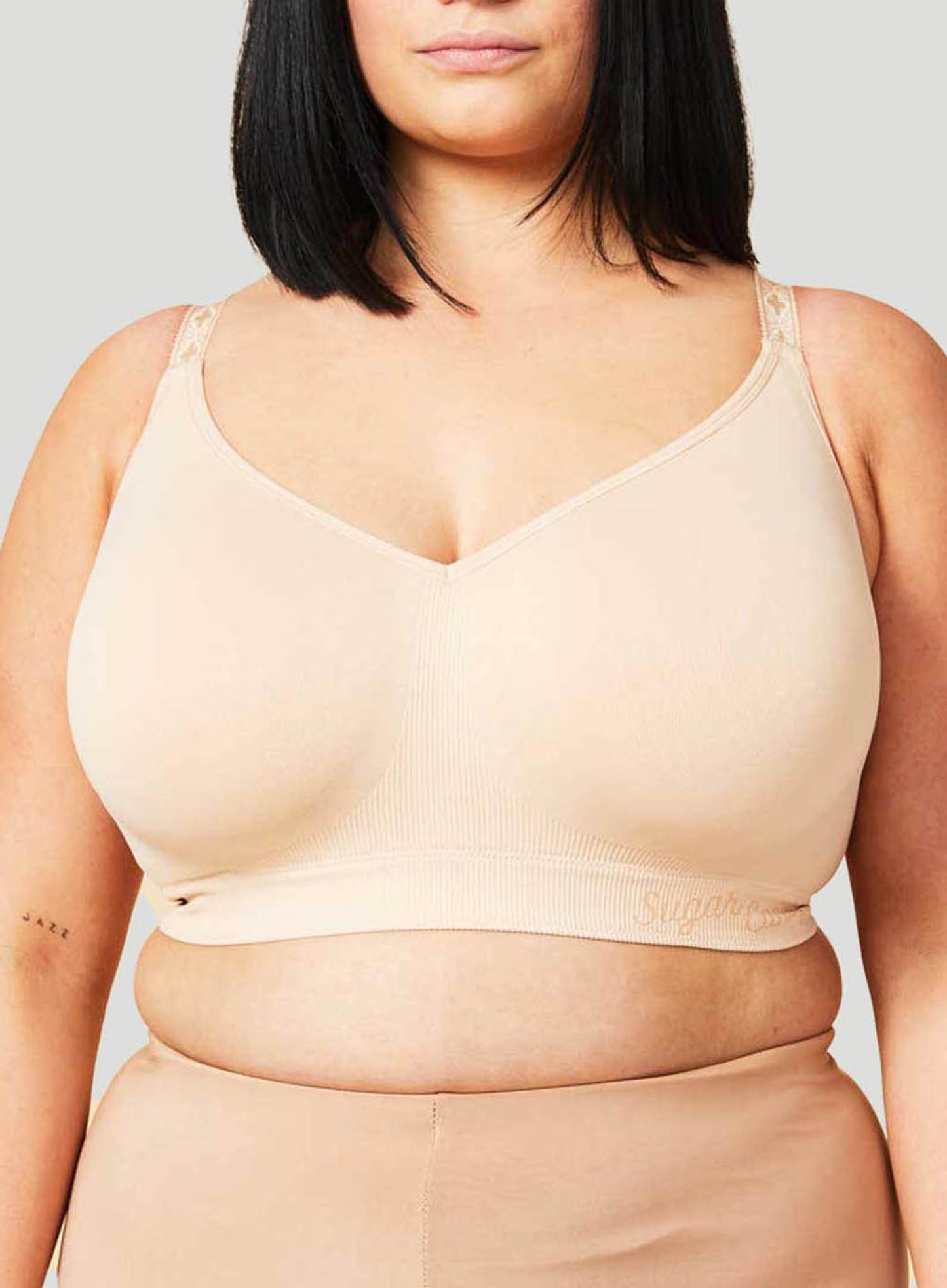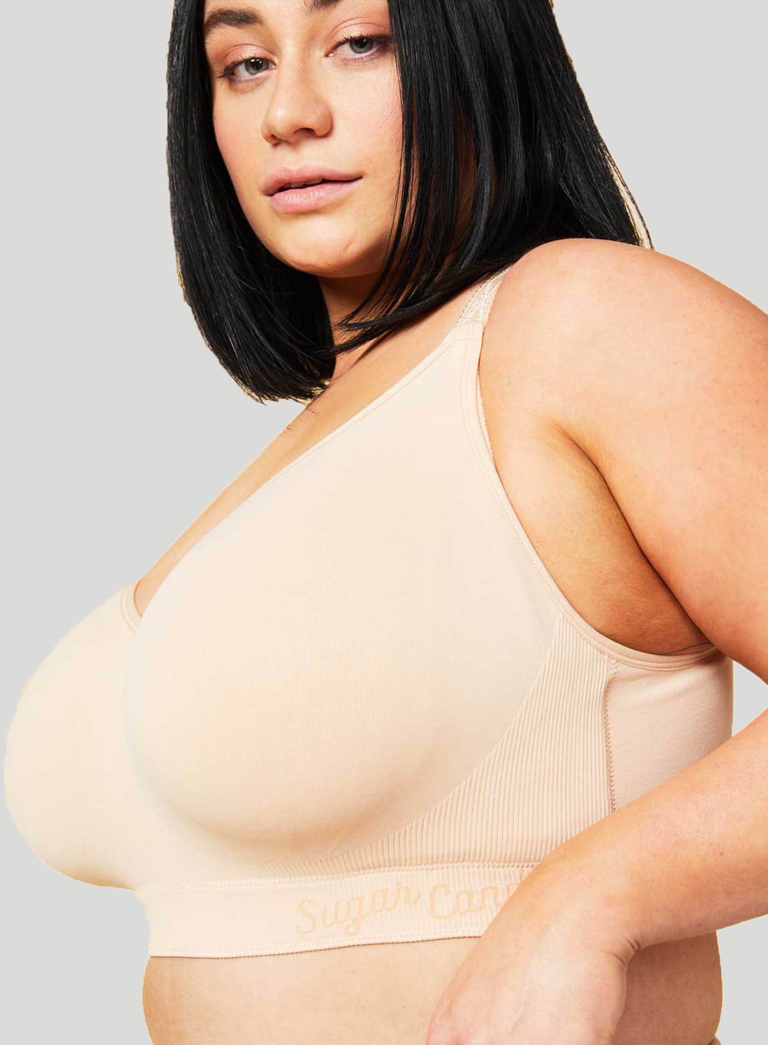 CAKE LINGERIE Sugar Candy Seamless Everyday Bra in Beige is wire-free, seam-free, supportive and ultra comfortable bra for the fuller busted lady. The sugar candy bra is not only suitable for everyday wear, but is comfortable enough to keep on throughout the night. The highly engineered, constructive support panels, offer a supportive hold and ultimate comfort. With graduated straps and bands, you'll love the security and shape that this bra has to offer.
