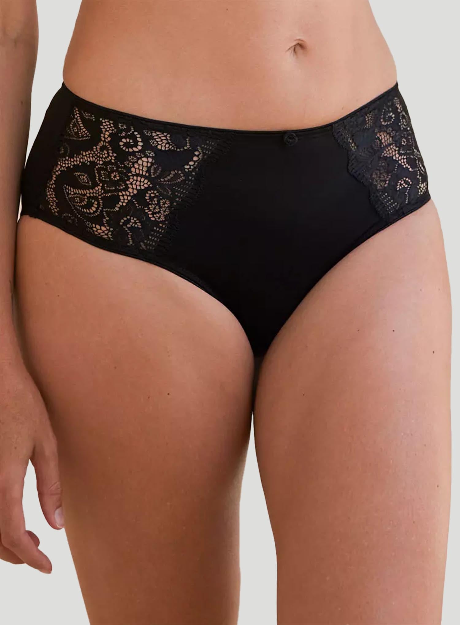 SUSA Latina Brief features sheer stretch lace panels on the front hip and a small rosette centre front for a glamorous look. These midrise briefs offer medium coverage on the bottom and are made from a lovely soft feel fabric and include a cotton gusset for everyday comfort.