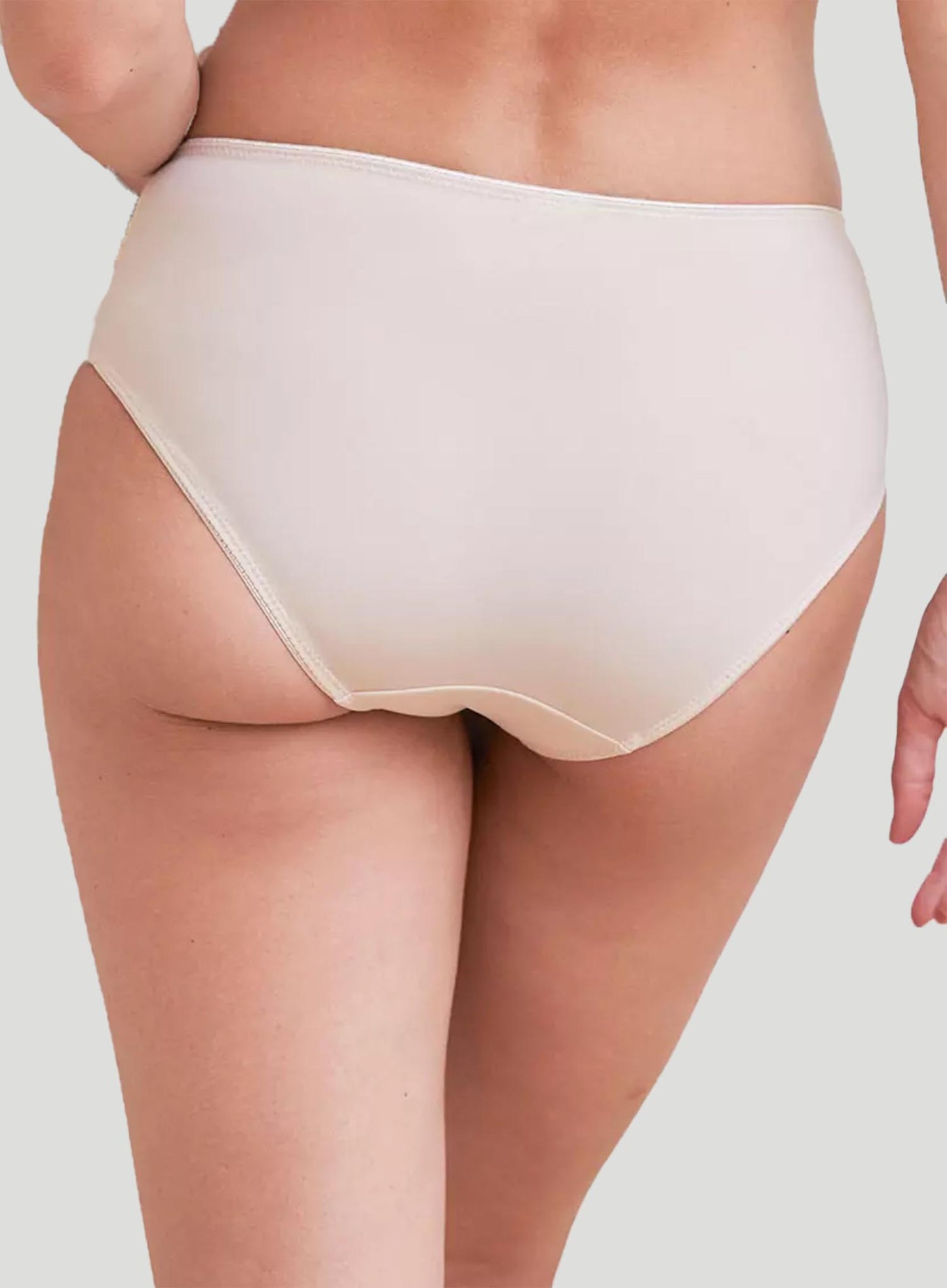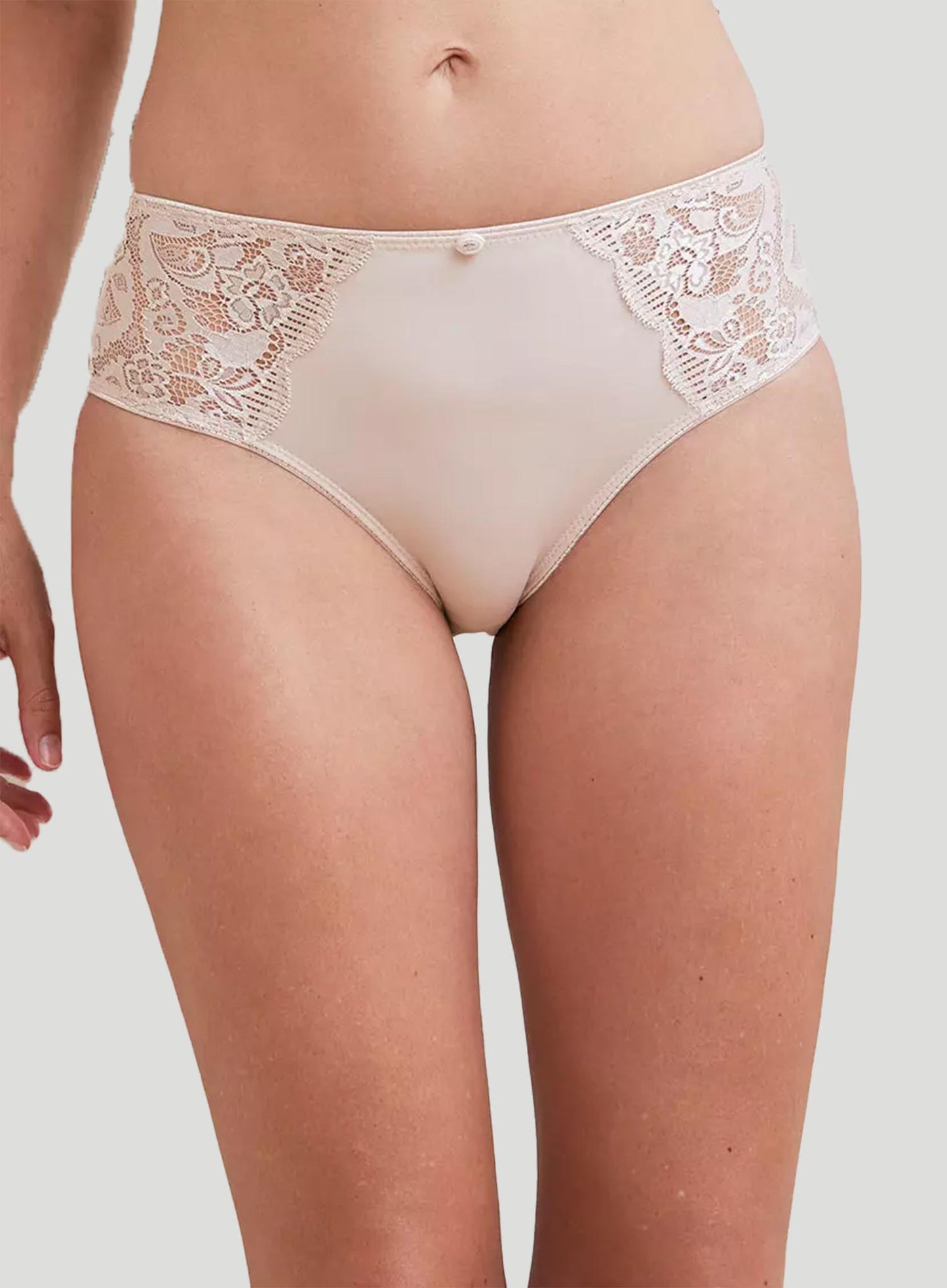 SUSA Latina Brief features sheer stretch lace panels on the front hip and a small rosette centre front for a glamorous look. These midrise briefs offer medium coverage on the bottom and are made from a lovely soft feel fabric and include a cotton gusset for everyday comfort.