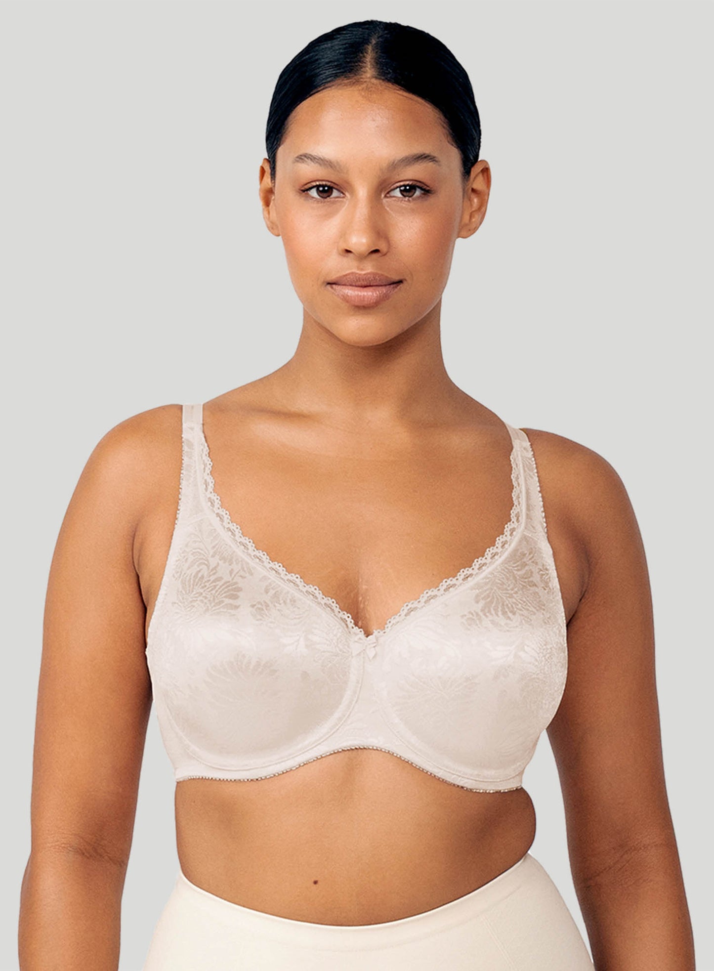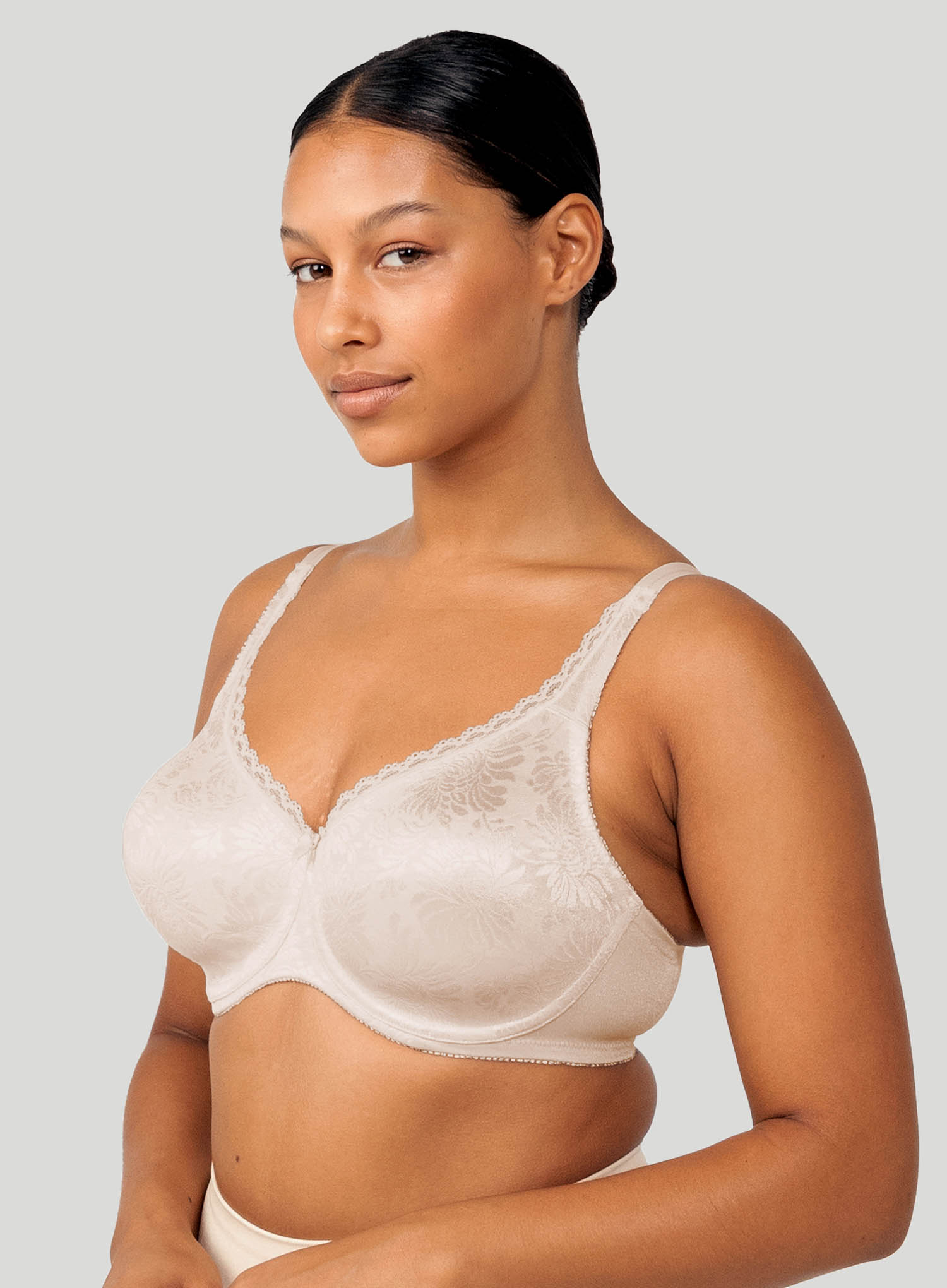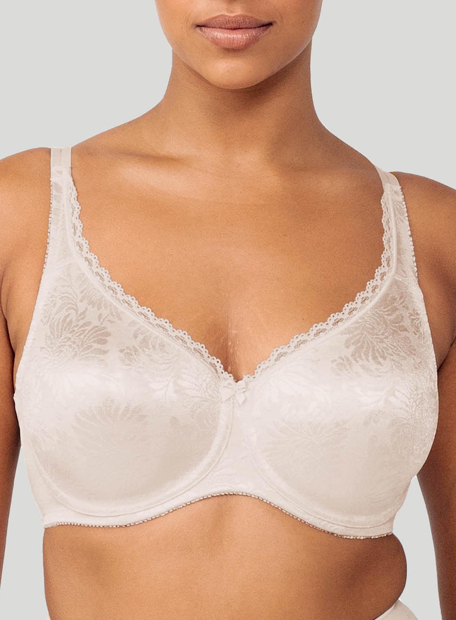 - Moulded floral jacquard cup for a smooth silhouette under clothing