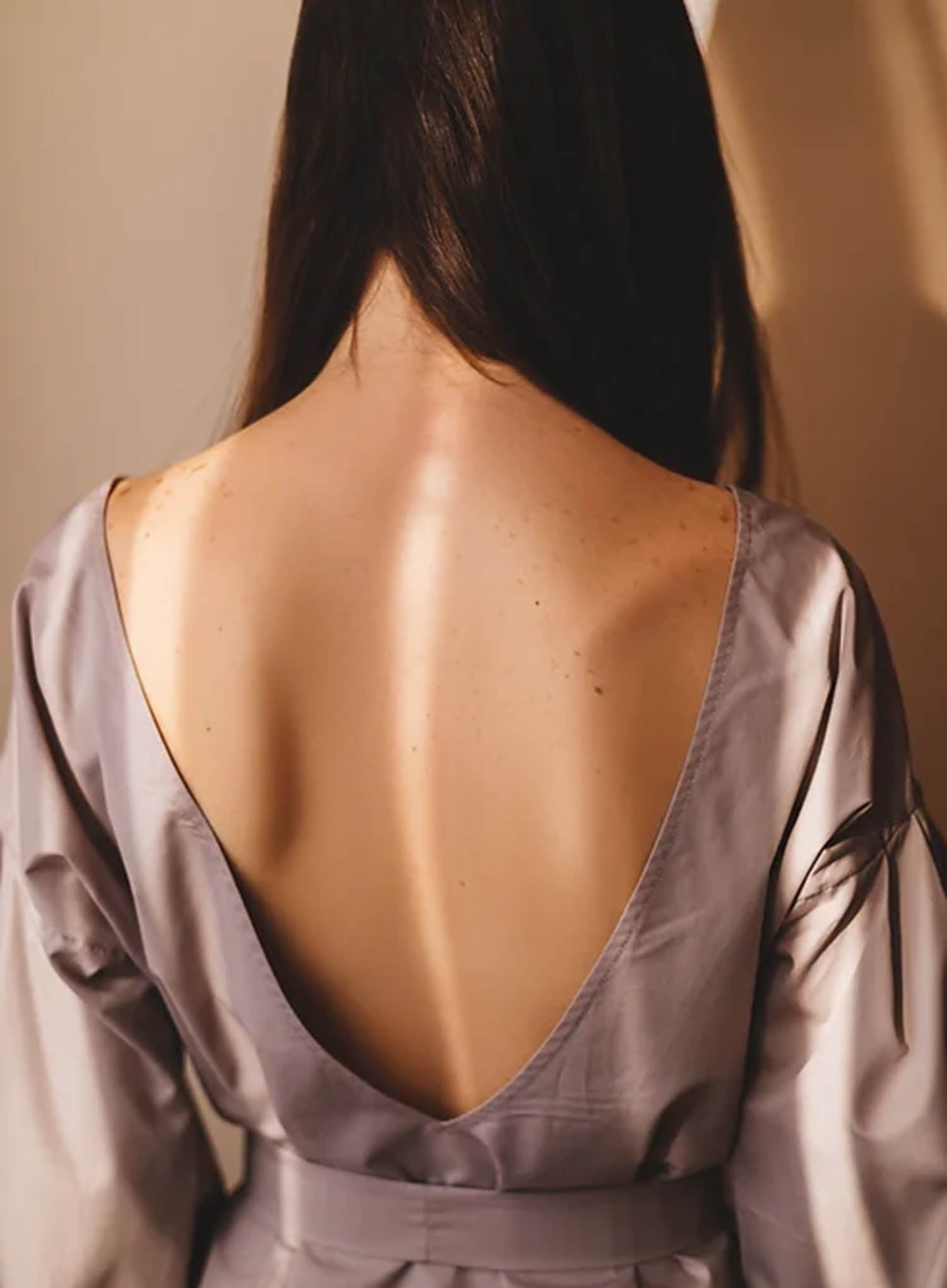 • Remove the plastic sheet covering the back of the Strapless Stick-on Bra