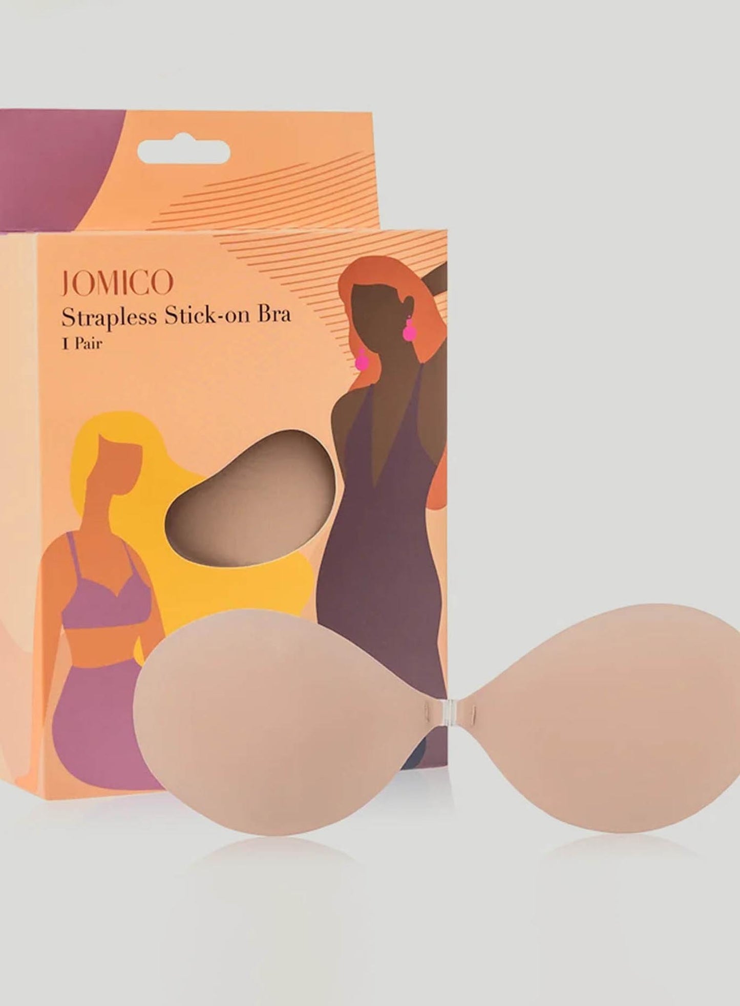 JOMICO Strapless Stick-On Bra is your secret weapon for seamless and undetectable support. This set of bra cups use uses silicone gel to create a perfect fit and a smooth silhouette, featuring a front clip for extra lift and security. Washable and reusable, this design warms and moulds to the shape of your bust for a smooth and invisible look. Whether you're a fan of a sleek silky number, or perhaps a backless or strapless design, this product lets you embrace any neckline or trend.