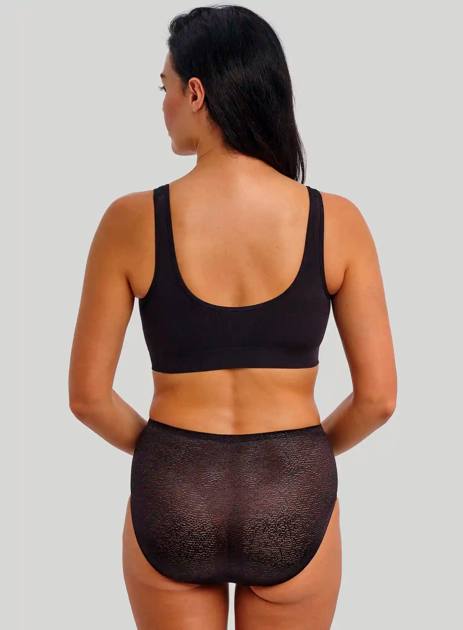 - Full coverage cups with sewn-in plush pocket for breast form/prosthesis