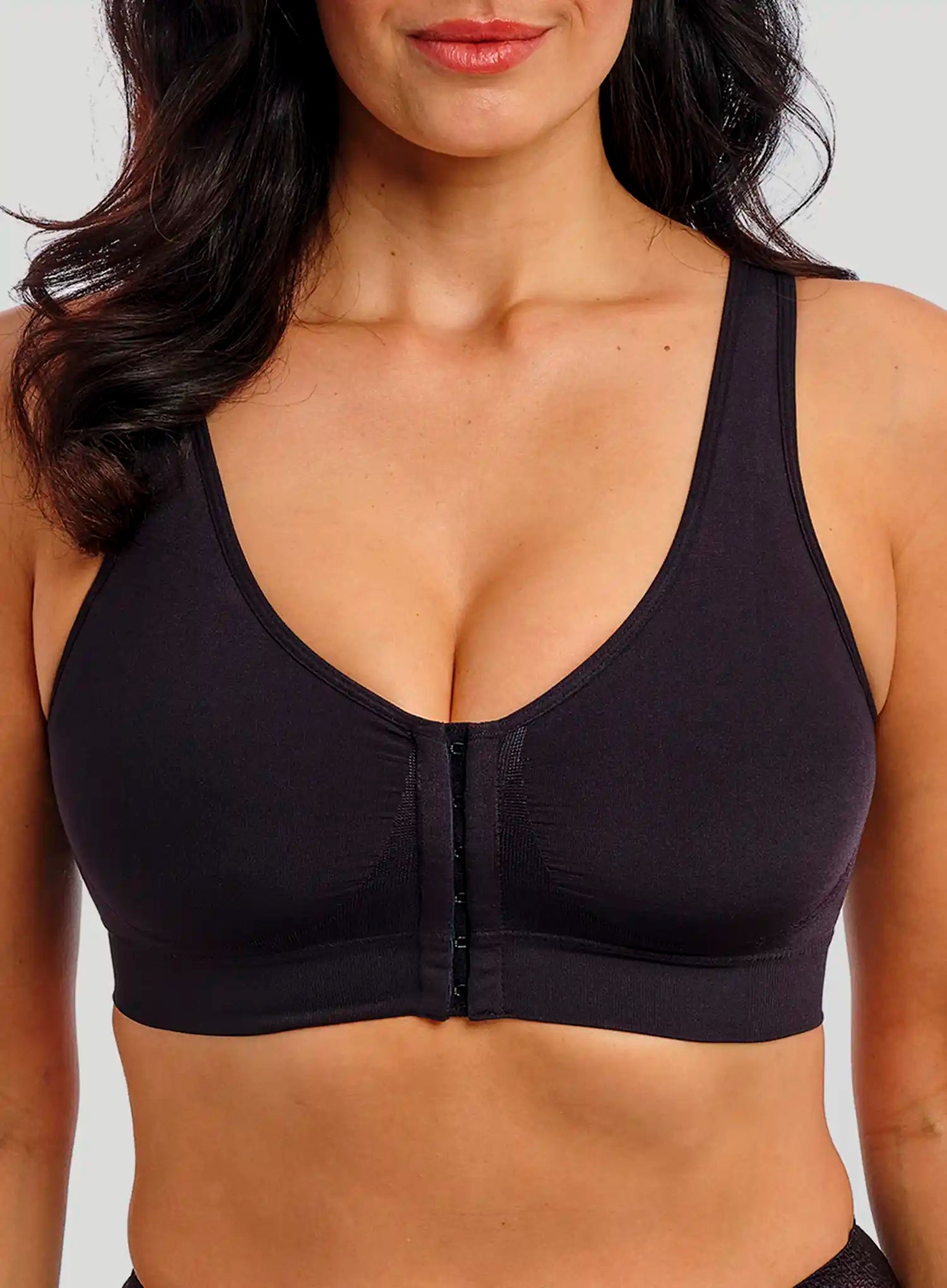WACOAL B Smooth Non-Wired Front Opening Bralette in Black is a revolutionary addition to the Wacoal range—designed with post-surgery comfort, ease, and softness at its core. This seamless mastectomy bralette features a gentle compression fit and front hook-and-eye closure, making it incredibly easy to put on and take off, especially for those with limited mobility after surgery.