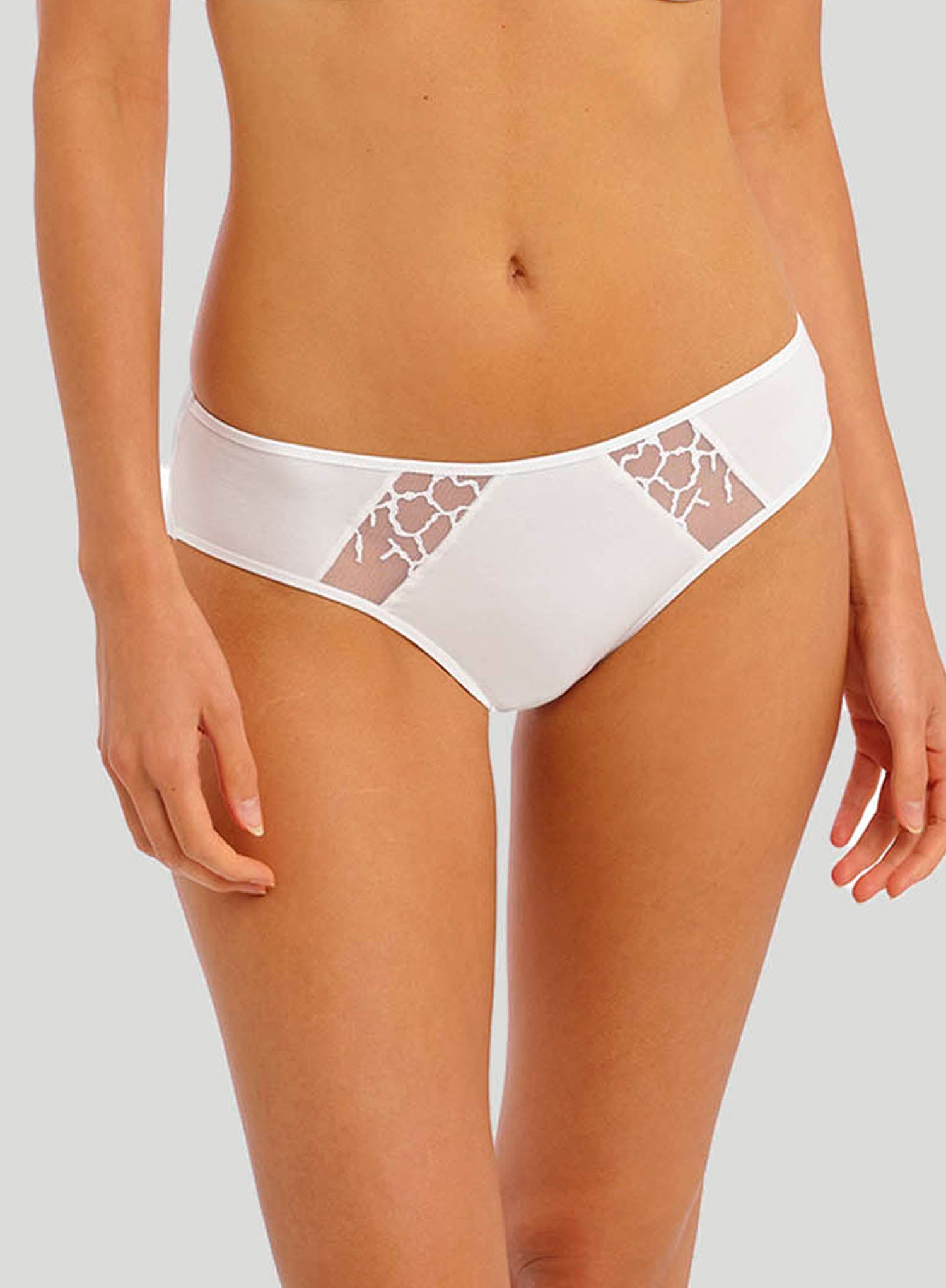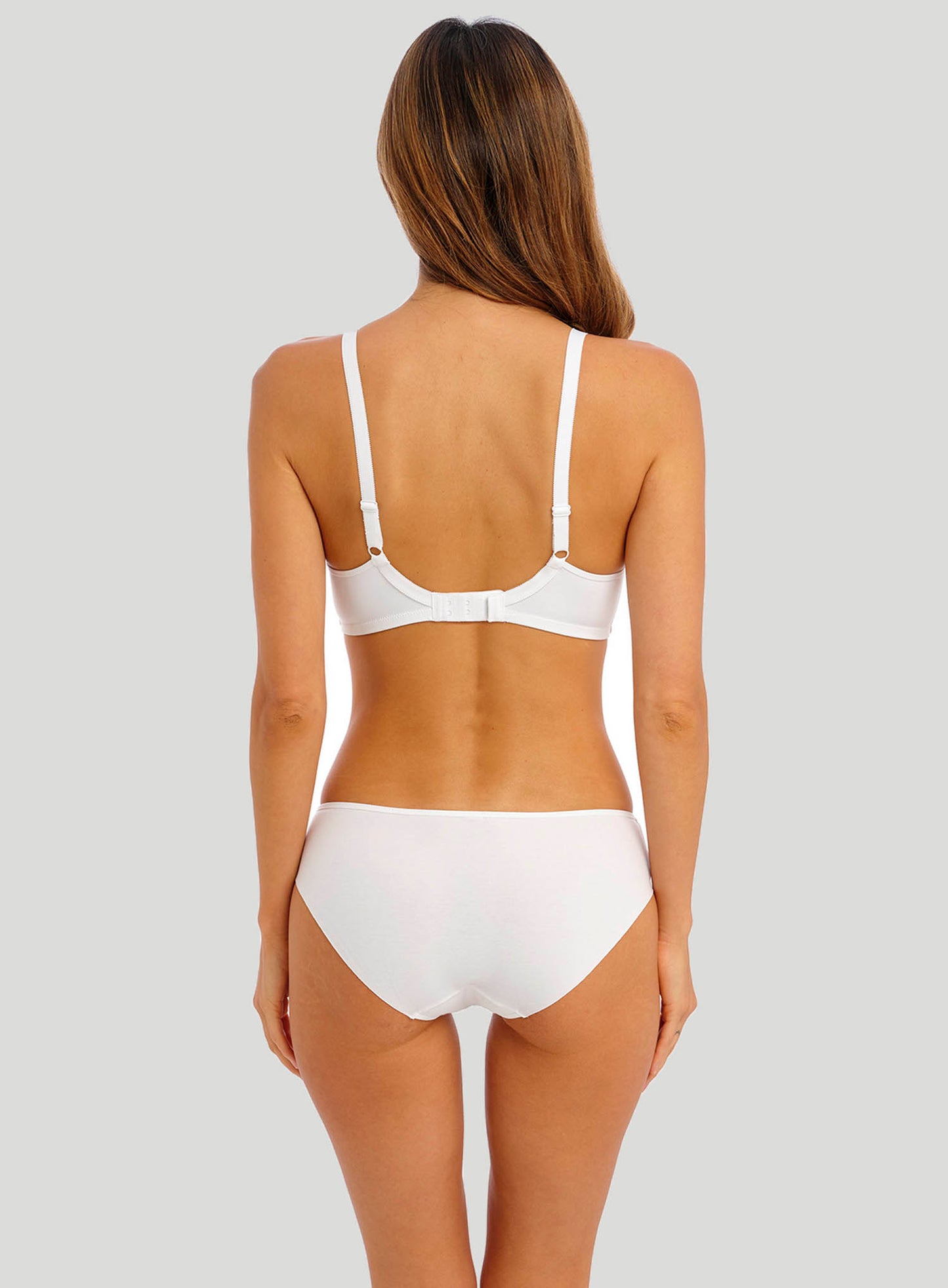 WACOAL Lisse Brief in White is cut from 82% cotton fabric with intricate Swiss embroidery inserts to the sides of the centre front, and a fold-over elastic for a flat finish, this mid-rise waist brief with its medium back coverage is perfect for any occasion.